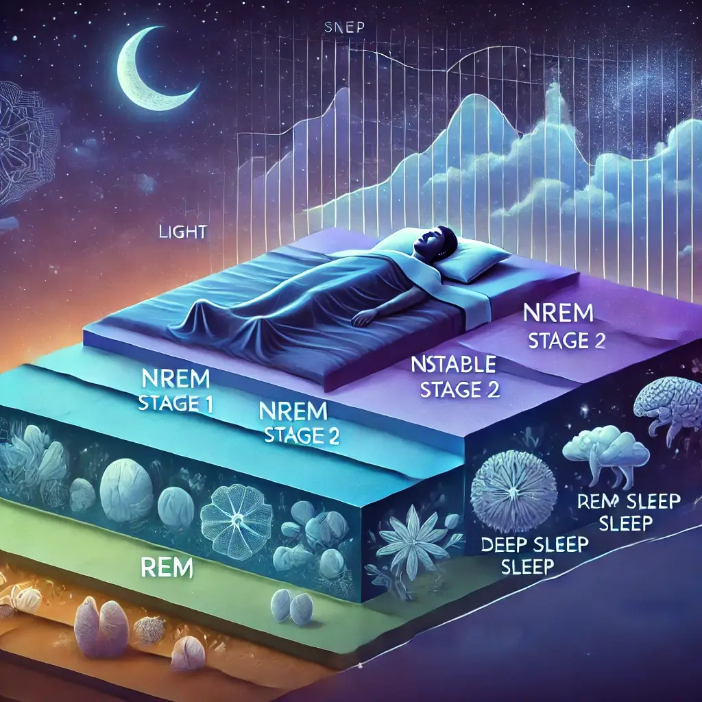 This is the lightest phase of sleep, where brain activity slows, and muscles begin to relax. Lasting only a few minutes, Stage 1 acts as a gateway from wakefulness to deeper sleep, accounting for about 5% of total sleep time.